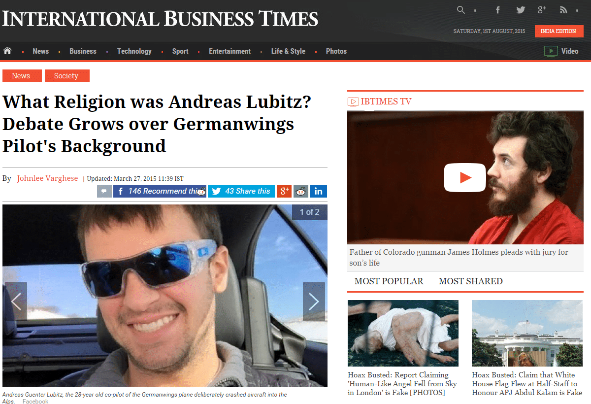 Now four months after the crash, his picture has been related in over 6,790 articles online including larger media outlets such as CBC News and International Business Times. Additionally some search engines had picked up Koski’s picture as the default image for “Andreas Lubitz.” This goes without saying, the image has also been shared thousands of times on social media as well.