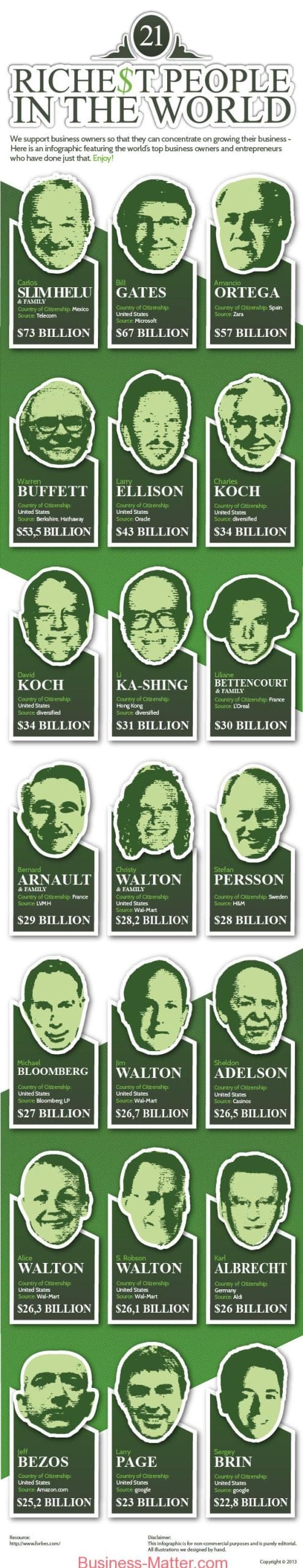 This infographic shows the top 50 richest billionaires in the world. Most of them are from US. [caption id="attachment_1679" align="alignleft" width="300"] world richest billionaires and the source of income[/caption]